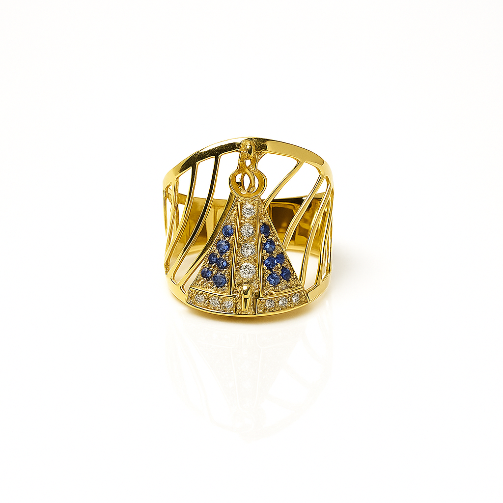Anel de ouro, com brilhantes 4,5 pontos redondo 1mm, 12 safira azuis 1,3mm 01