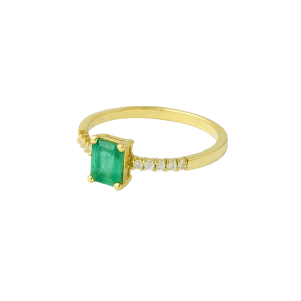 Anel de ouro, com esmeralda retangular 6x4mm, 10 pontos de brilhantes 01